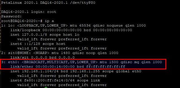 Besides reading its environment partition, U-Boot can also be patched to read its MAC address from an arbitrary address from QSPI flash. I got this inspiration from Digilent’s Genesys Github repo Read MAC in flash patch, and updated it for Petalinux 2020.1. Credit where due.