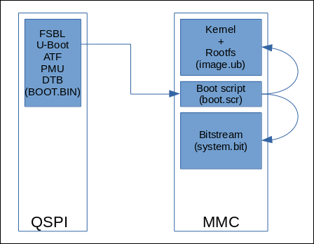 The flexibility of U-Boot distro boot feature is exercised in this post, where we configure the target to boot from QSPI flash, then load the rest of the binaries from MMC.